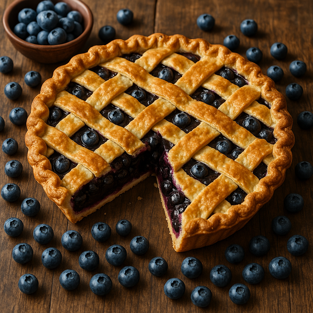 Indulge in the sweet and tangy flavors of our homemade blueberry pie, crafted with fresh blueberries and a flaky crust. Perfect for family gatherings or a cozy dessert at home.
